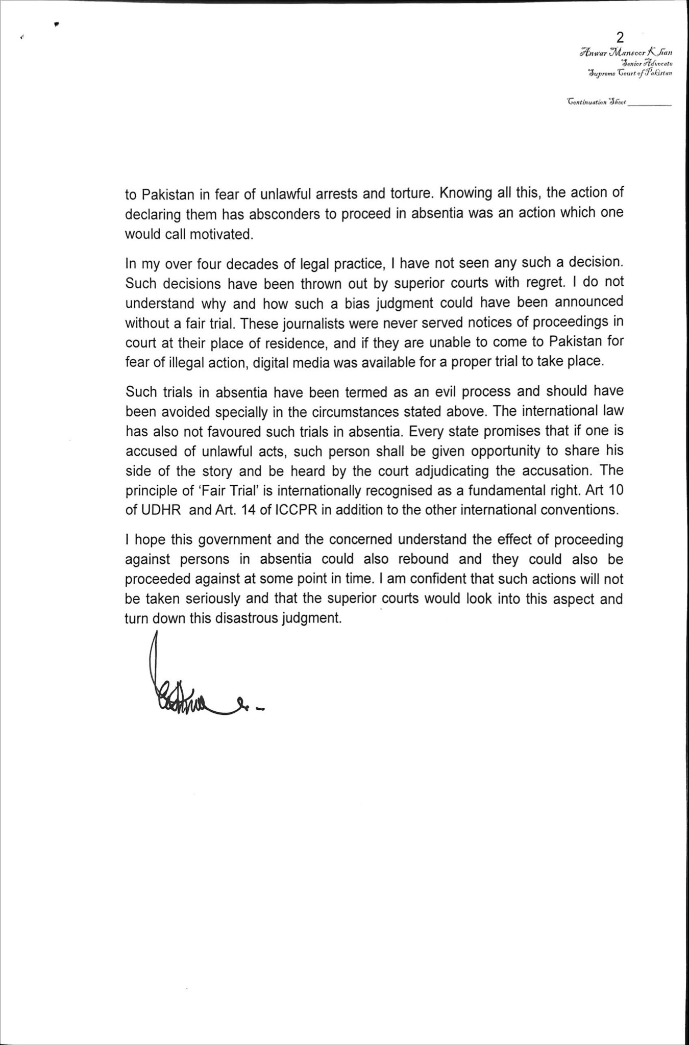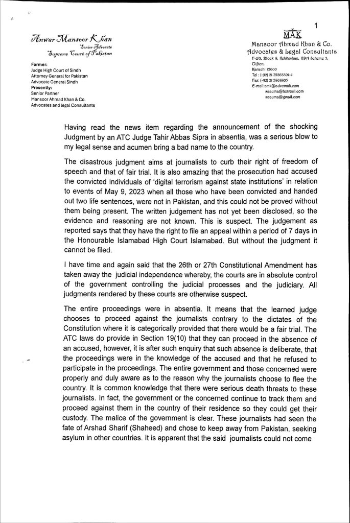 Authorities have now weaponised trials in absentia Pakistan against journalists accused of so-called “digital terrorism.” According to the letter, courts convicted the accused without their presence, denied them access to evidence, and failed to issue written judgments.